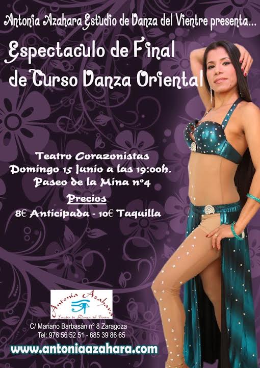 Fin de curso Antonia Azahara Estudio de Danza del Vientre y Folclore Árabe – 15 Junio 2014 por antonia · junio 15, 2014 ¡Acompáñanos en nuestra muestra de Fin de Curso un año más y disfruta de la Danza! Share